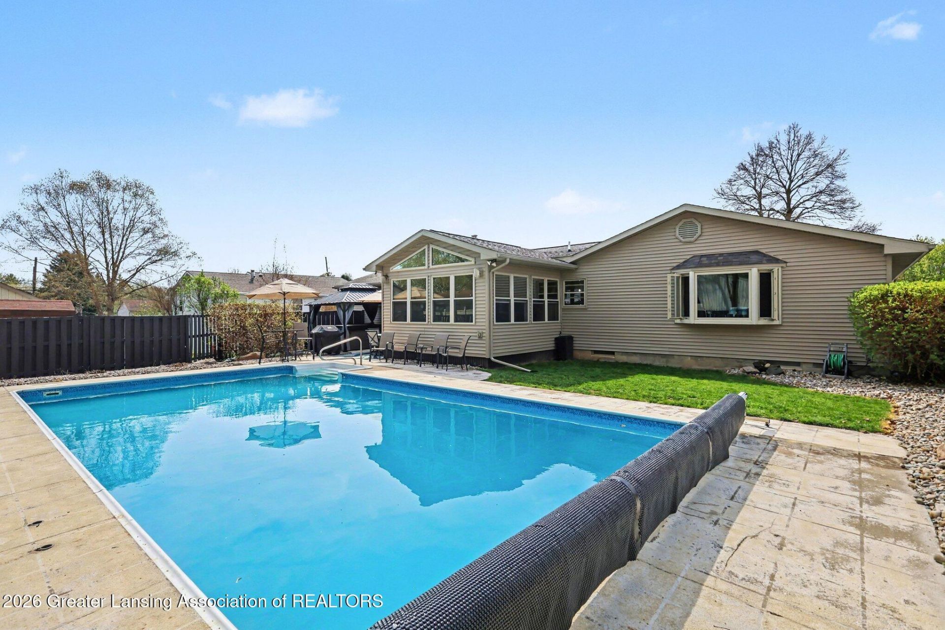 Welcome home to comfort, style, and entertainment-ready living in a quiet cul-de-sac. This 3-bedroom, 2.5-bath residence offers 1,709 sq. ft. of main-level space plus an additional 1,400 sq. ft. of finished basement living. Step into a bright, inviting layout and enjoy standout upgrades throughout, including granite countertops and beautiful maple cabinetry in the kitchen. All appliances stay, including the washer and dryer, for an easy move-in experience. One of the homes best features is the 4-season room, perfect for relaxing year-round while enjoying the views of your backyard oasis. Outdoors, youll love the private retreat feel with a in-ground pool and hot tub?ideal for summer gatherings and weekend downtime. Need more flexibility, basement has 2 bedrooms for guests & bonus roo