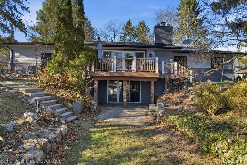 Waterfront with amazing views and on one of Oakland County's most sought after lakes - DUCK LAKE! 85 feet of waterfront out your back door on a private lake and all on a .59 Acre Lot. The most demand layout of 2026 is a RANCH and this ranch offers so many great features with it's 3 bedrooms and 2.5 baths: Walkout finished basement for all your entertaining needs from inside then right out the door to the enormous yard and onto the dock to start your boating adventures. Vacation at home and enjoy every moment of serenity. Located on the quieter part of the lake has it's benefits and easily join the busy part of "Big Duck Lake". Positioned perfectly this waterfront home is facing south with sun and amazing sunset views. Walk in the front door and you can see the lake welcoming you through the wall of windows in the Living Room, beautiful hardwood floors, kitchen with granite and gas range, stainless steel kitchen appliances, 1st floor laundry, in kitchen pantry, open floorplan for easy entertaining, beautiful updated powder room, stunning dual bath to primary bedroom with dual sinks, euro glass shower, free-standing amazing tub, double door closet in Primary Bedroom, Bedroom 2 has its own sink area and double racked closet. The walkout finished basement offers so much more space to relax and entertain in with it's own full bath and family room and flex room, wall to wall windows out the walkout level to the backyard space and waterfront. Newer roof & gutters 2022, vinyl replaced windows (Anderson), boiler heat with a/c. Lake living can become your reality on a wonderful large lot. This is in Axford Acres HOA - optional HOA payment of $80/year for picnic area, boat launch and beach. Dock can stay in all year round! (measurements approx, some photos are vitually staged/edited)