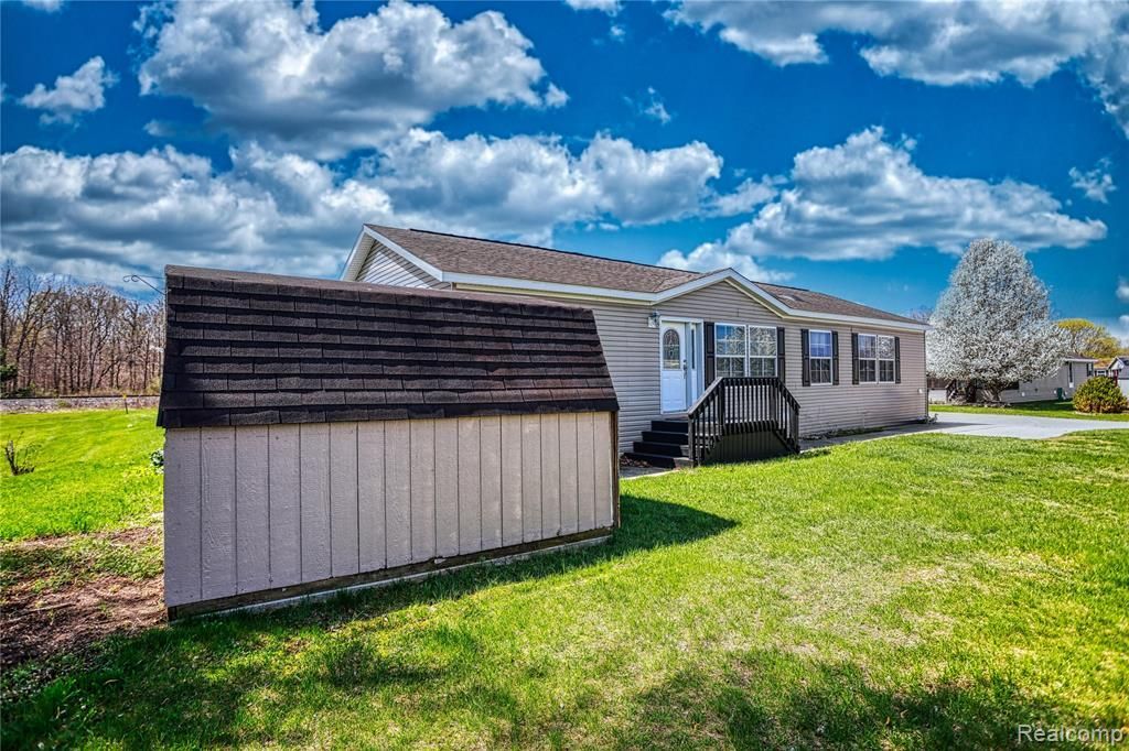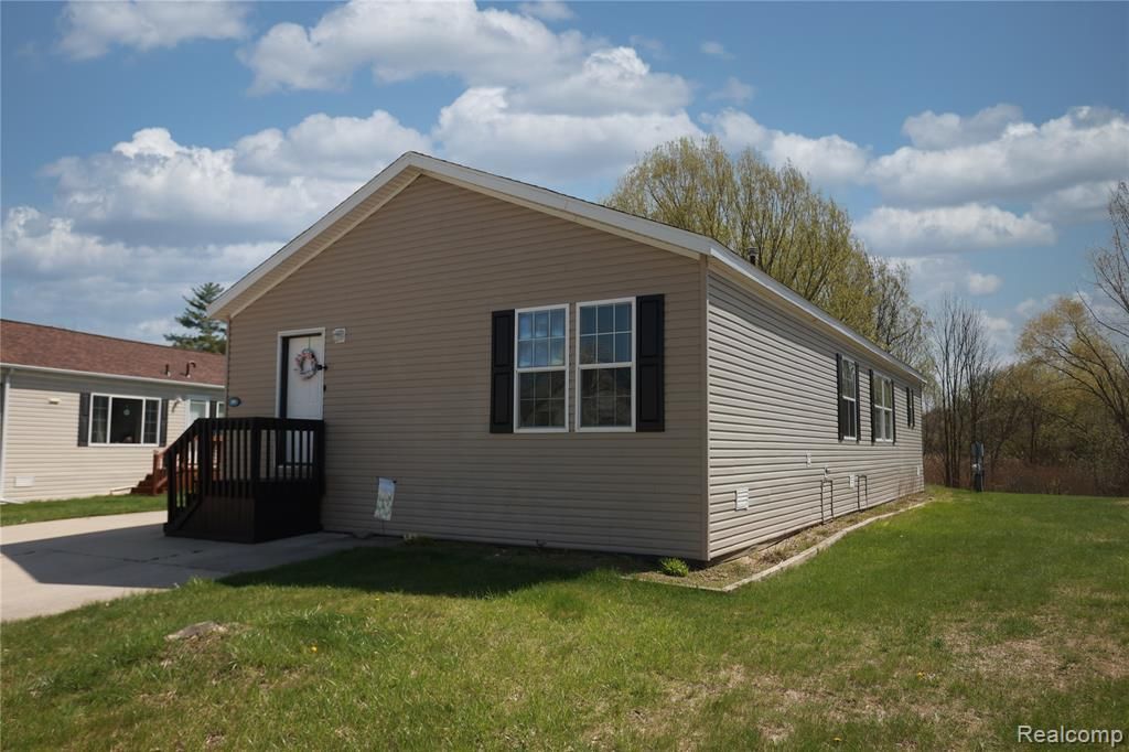 Welcome home to this family friendly 3-bedroom, 2-bathroom retreat designed for comfort and effortless living. Located within the vibrant Pine Lakes Community, this home offers the perfect balance of private living and resort-style amenities. The location of this home is highly sought after as it backs up to a wooded area, providing ample back yard and a beautiful view. This home boasts a spacious layout with a split floor plan: three bright bedrooms providing plenty of space for family, guests, or a home office. The kitchen has endless cupboards and enough space for a dining room table. As you move into the living room, there is the option to have a dining room table in that area as well. The master suite is a true sanctuary featuring an expansive walk-through closet and a private ensuite bathroom. A sliding glass door leads you to your back deck where you can enjoy your morning coffee. The Pine Lakes Community features a sparkling pool that is perfect for cooling off on sunny days, a fitness center that allows you to stay active without the commute or gym fees and a beautifully maintained clubhouse that provides a welcoming space for social gatherings and community events. This community is close to Lapeer but allows for a quiet living setting. Community approval is required prior to purchasing this home.