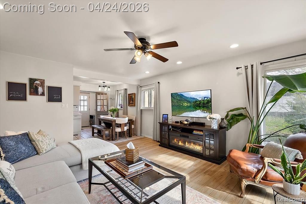 Sweetly set on a quiet Southfield street, just steps from a soon-to-open 39-acre nature preserve, 28022 Fairfax is a fresh, updated ranch that lives bigger than its square footage. Thoughtfully finished & turn key, this 3 bedroom charmer is easy to love and easy to call home. Step inside to a light & bright main level anchored by wide wood look floors throughout. Expansive windows bathe the living room in natural light, while the updated kitchen boasts stainless appliances, a gas range, marble-tone counters, & crisp white cabinetry with classic subway tile. Three well scaled bedrooms offer flexibility, served by an updated full bath. One bedroom lives beautifully as a handsome home office with a built-in bookshelf nook. The real standout? A custom dressing room with floor-to-ceiling shelving, drawers, & hanging space — rare storage for a home this size. Outside, enjoy a private backyard & detached 1-car garage. Across the street, the brand new Southfield Oaks Nature Area, a 39-acre green space with walking trails, native landscaping, and the state's largest splash pad, is slated to open in 2026. A front-row seat to one of Southfield's most exciting new amenities. Turn-key, tastefully finished, & perfectly positioned. Move-in, unpack, & enjoy. Welcome home!