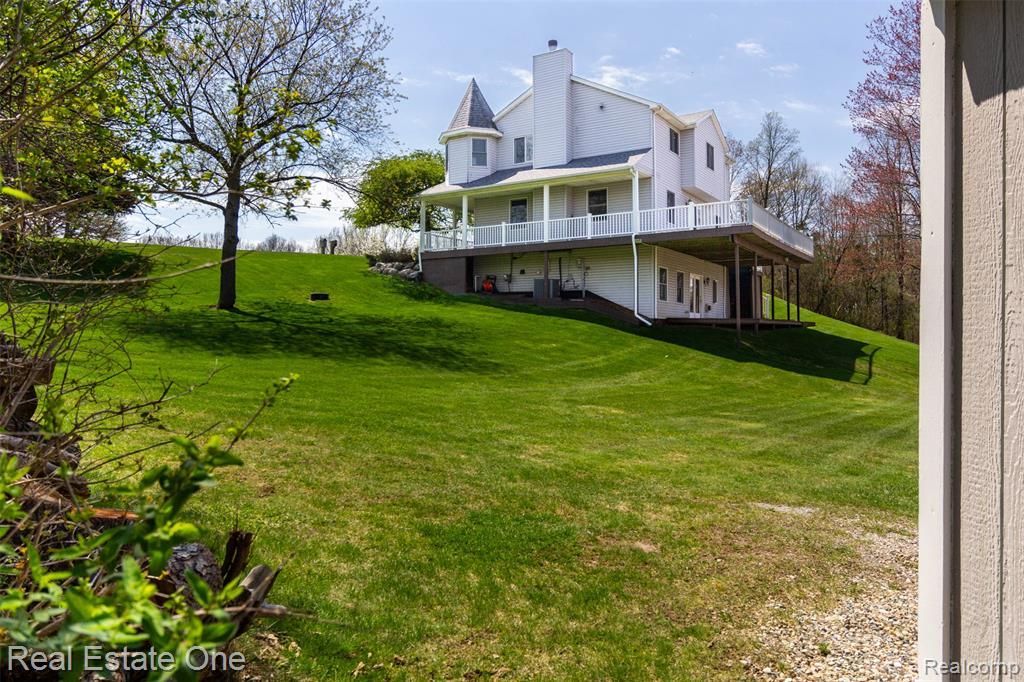 Experience morning coffee on your expansive deck while the natural world wakes around you — a private sanctuary overlooking protected wetlands where diverse waterfowl, deer, foxes, and countless bird species make their home. This serene 2.42-acre retreat offers panoramic views, year-round beauty, and unmatched tranquility. Wraparound decking encircles the home, creating a seamless indoor-outdoor lifestyle and multiple vantage points for vibrant nature viewing. The two-story residence with a finished walkout lower level provides **2,690 sq ft** of inviting living space, highlighted by two fireplaces — a natural-gas fireplace in the living room and a wood-burning fireplace in the lower-level family room. The circular main-floor layout is ideal for entertaining, flowing effortlessly to the exterior decks through a dinette door wall and front door entry. A library/den offers the perfect flex space for a home office. Upstairs, the primary suite is a true haven featuring an updated bath (2023), walk-in closet, and a light-filled turreted retreat ideal for reading, working, or a nursery. Two additional spacious bedrooms — one with a walk-in closet — along with the main bath, a loft area, and a conveniently located laundry room complete the second floor. The open-concept kitchen showcases granite counters and stainless-steel appliances, connecting directly to the dinette and deck for effortless outdoor grilling. A mudroom sits just off the garage for everyday convenience. The walkout lower level is designed for relaxation and entertainment, offering abundant natural light, a private deck, fireplace and a built-in bar. A large mechanical room provides excellent storage and workspace. **Recent updates include:** • 2023 – Primary bath • 2022 – Driveway • 2020 – Water heater • 2019 – Roof • 2016 – Furnace, A/C, water softener, and well upgrade • 2014 – Iron tank. Garbage collection is included in the winter tax.