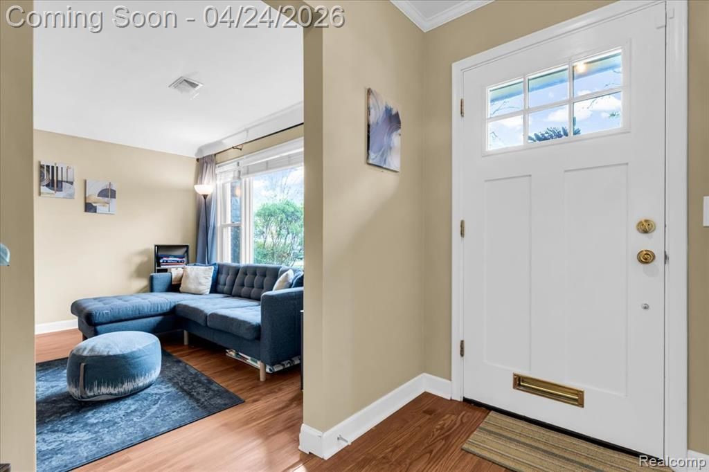 A ranch in Royal Oak's coveted Beverly Hills subdivision doesn't come along often. This charming 3-bedroom brick ranch sits on a sprawling lot, offering a private backyard that's hard to find in this area. Upon entering, you will be greeted by a sun-soaked entryway. The large open-concept living room has a gas fireplace and large picture windows overlooking the quiet street. The bedrooms are generous in size with one being used as a home office. The full bath has a large vanity with dual sinks and the primary bedroom has a large walk-in closet. The eat-in kitchen is so charming, with white cabinets, quartz counters, and stainless steel appliances. The dining room off the kitchen is a great size for hosting dinner parties, and overlooks the four-season room with a doorwall to the backyard, perfect for enjoying your morning cup of coffee. The large mudroom/entry way off the garage is functional with washer/dryer and a ton of cabinetry for extra storage. Outside you will find a cozy pergola and storage shed to store all of your outdoor toys! Walk or drive to the vibrant shops, restaurants and amenities of downtown Birmingham, or take a quick journey down Woodward and enjoy the social district of Royal Oak. Recent updates include: boiler (2025), water heater (2025, washer/dryer (2026) and range (2026). Ranch-style homes with this level of charm, space and location rarely come to market- this is the one you've been waiting for.