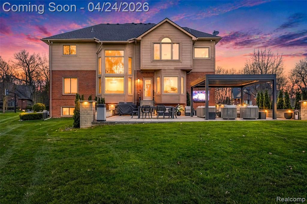 Fully renovated, this exceptional home offers nearly 4,700 sq ft of living space, including a finished daylight lower level. Step into a grand two-story foyer and Great Room, complemented by a formal dining room with extensive molding, a pillared living room with architectural windows, private library, and a two-story family room featuring new carpet and a custom fieldstone fireplace with bridge overlook. The kitchen features quartz countertops throughout, a large center island, double ovens, pantry, newer custom 42” cabinetry, updated flooring, and custom window treatments. The breakfast nook includes an additional fireplace, creating a warm and inviting space. The primary suite includes vaulted ceilings, an oversized walk-in closet with organizers, and a custom bath with French doors, dual vanities, built-ins, a jetted tub, and multi-head shower with custom tile. The finished daylight lower level provides additional living space with a bedroom/exercise room and flexible use options. Additional highlights include first-floor laundry, zoned heating and cooling, and a 3-car garage. Situated on an oversized interior lot, enjoy a newly remodeled patio and expansive backyard for outdoor enjoyment. Convenient location with access to I-96, I-696, and I-275, along with nearby shopping, dining, and everyday amenities. Pictures are a glimpse of all this home has to offer. Opportunity to purchase in a desirable subdivision.