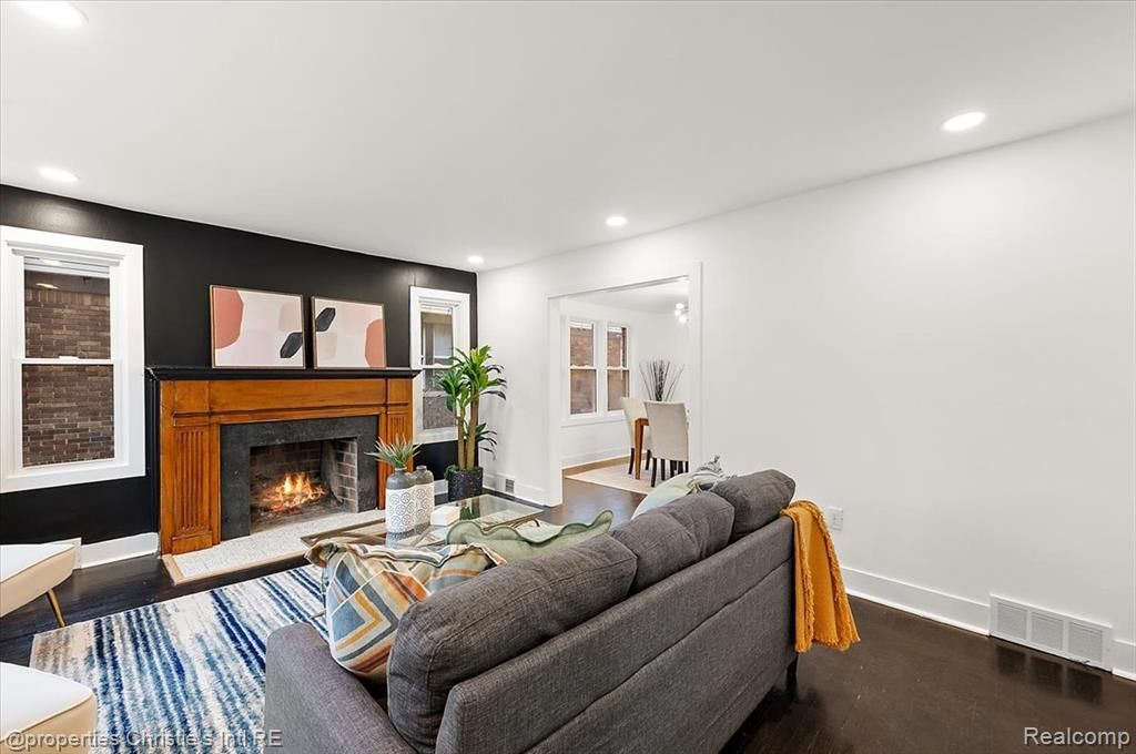 Elegantly reimagined in the heart of Morningside, 5040 Balfour delivers a rare combination of historic Detroit craftsmanship and fully rebuilt modern luxury. This 6-bedroom, 3-bathroom brick Tudor-inspired residence has been taken to the studs and rebuilt with the finishes today's discerning buyer expects: ALL-NEW electrical, plumbing, HVAC, windows, drywall, and insulation — paired with refinished original hardwood floors that anchor the home in its timeless character. The main level opens to a sun-lit living room with decorative fireplace, flows through a dramatic dining area beneath a sculptural modern chandelier, and delivers you into a showpiece chef's kitchen featuring two-tone shaker cabinetry, premium quartz countertops, subway-tile backsplash, and matte black designer hardware. The primary suite is a true retreat — shiplap accents, a working gas fireplace, and a spa-style marble bath with glass walk-in shower, soaking tub, and floating wood-grain vanity. Two additional fully-marbled bathrooms serve five more bedrooms appointed with dark hardwoods, plush carpet, and abundant natural light. Expansive full basement with freshly poured epoxy floors, elevated rear entertaining deck, fully fenced yard with new wood privacy fencing, and detached 2-car garage. Walking distance to Balduck Park and minutes to Grosse Pointe's dining, lakefront, and top-rated schools. Turn-key, move-in ready, and priced to reward the buyer who recognizes value where quality meets location.