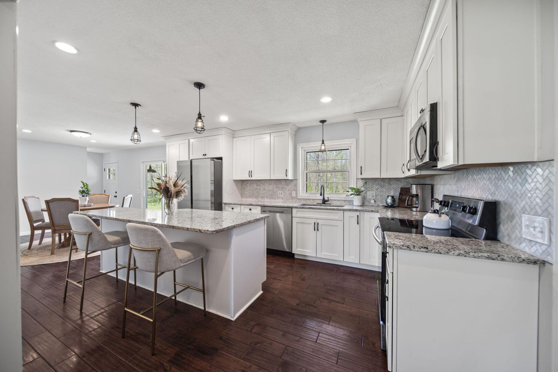Tucked away on 10.38 wooded acres in the highly sought-after Big Walnut Local School District, this property offers a rare opportunity to experience true privacy, nature, and everyday comfort - all in one place.Surrounded by mature trees and abundant wildlife, it's not uncommon to spot deer passing through or enjoy the peaceful sounds of nature right from your own front porch. This is more than just a home, it's a setting that allows you to slow down, spread out, and truly enjoy the outdoors.The main level offers 3 bedrooms, 2 full bathrooms, a comfortable living room, and an eat-in kitchen designed for everyday living. The updated kitchen features shaker cabinetry, granite countertops, stainless steel appliances, and a large center island, providing a bright and functional space for cooking and gathering.The finished lower level expands your living space even further, featuring a large rec/living area with a fireplace - perfect for a second living room, movie space, or entertaining area. An additional separate room offers flexibility for a home office, gym, or hobby space.With multiple living areas across two levels, this home offers more usable space than you might expect at first glance.A full-length covered front porch creates the perfect place to unwind, whether it's morning coffee, evening sunsets, or simply taking in the quiet surroundings.A large rustic shed made with hand huen beams includes electric and offers flexible space for hobbies, 4H projects, or storage. If you've been searching for a property that offers privacy, usable space, and a connection to nature, while still being move-in ready -this is one you won't want to miss.